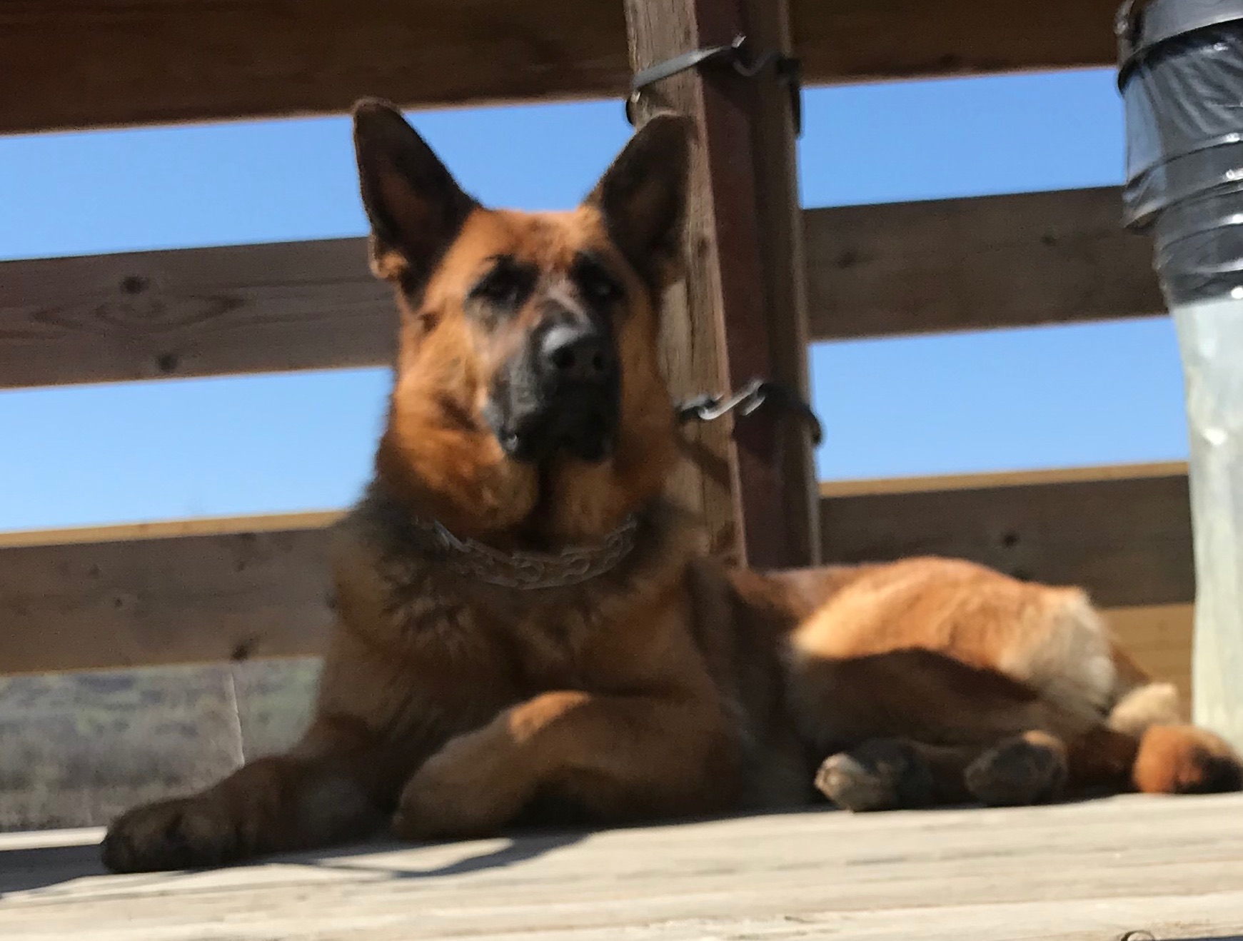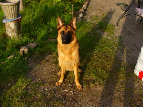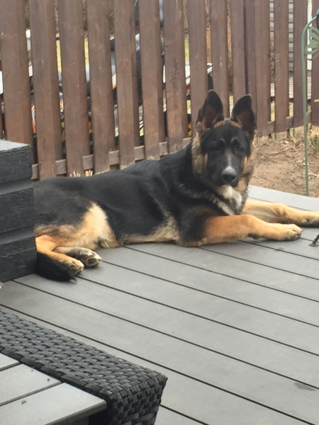 Voici Rosco après une semaine avec nous. Quel bon chien, courageux, sociable, intelligent. Il va très bien et nous démontre beaucoup de qualités qu'un berger allemand doit posséder. Il s'est très bien adapté à son nouvel environnement. Aujourd'hui, il a joué avec 4 jeunes enfants, J'étais vraiment content de voir son comportement.