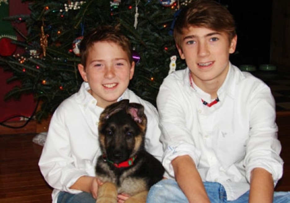 Martine, Here he is in his new home and these are my two boys who love Finn very much. I again want to thank you for making this process so smooth. Finn is the name we decided on and he will be a very loved part of our family for a long time. He is practically house trained and we are working on everything else. He is very smart!!! I will continue to send you picture as he get older and more beautiful.