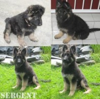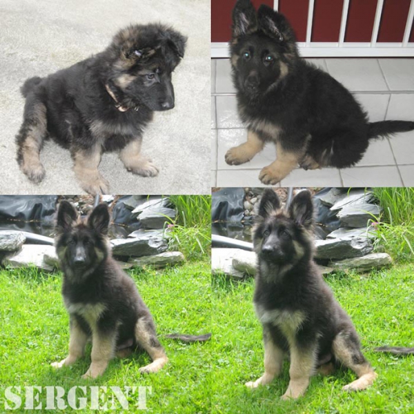 Bonjour Martine, Des nouvelles de Sergent, bientôt quatre mois. En quelques mots : équilibré et tellement beau. Première journée déjà propre. Premier dodo sans pleur. Il marche au pied même sans laisse. Sociable avec tout le monde. Il se fait arrêté tout le temps dans le parc tellement il est beau. Nous ne regrettons vraiment pas d'avoir choisi ton élevage. Je le recommande à tout ceux qui veulent un berger allemand de grande qualité. Il a changé notre vie. Merci et continue Martine ton excellent travail.