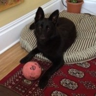 She is two years old now and amazing. She has a lot of drive and wants to please. As a one year old she chased a few bears out of the yard. Now she is intense when it comes to protecting us from the bears. We are so impressed. She is also very sweet, athletic and beautiful. Thank you Martine.