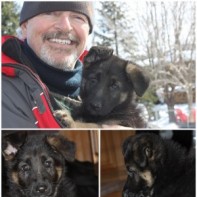 2013-04-26 11:47:40 Juste un petit mot pour vous présenter " SKY " qui est maintenant âgé de trois mois. Il est très calme, affectueux et espiègle avec tou ce qu'il peut trouver sur le plancher ( sans toutefois briser, car il le sait ;-))! Sky est dèja propre, il sais s'asseoir, se coucher, il nous donne la patte et plusieurs autres petits trucs qui nous font sourire. Son air charmant et indépendant sait plaire a tout les passants. J'en profites d'ailleurs pour remercier Mme Bouchard qui a pris le temps de bien nous accueillir en nous présentant chacun de ses chiens et ce malgré la tempête. La propreté des lieux, son organisation et son amabilité a répondre a toutes nos questions, sont remarquables. Elle demeure une très bonne référence! C'est une dame passionnée qui nous transmet grandement les mérites du Berger Allemand. Raynie et Lily-Rose
