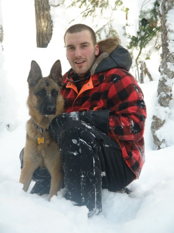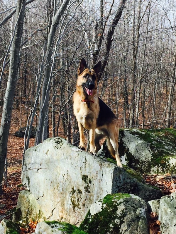 Bonjour, Voici Zoll, un beau mâle de 85 lbs et maintenant âgé de 17 mois. Toujours prêt pour l'aventure, un vrai sportif dans l'âme. Quel bon chien!