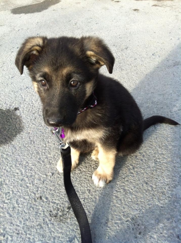 Bonjour! Nous sommes allés chercher notre petite Leya au Domaine du berger allemand il y a seulement 5 jours et nous sommes complètement sous le charme! À seulement 8 semaines elle est tellement intelligente! Elle était propre après deux jours, elle comprend plusieurs mots et elle marche super bien en laisse! Nous tenons à remercier madame Bouchard pour les précieux conseils et le suivi fait tout au long de ses 8 semaines. Quel bel élevage, les chiens sont exceptionnels et l'endroit est magnifique! Vraiment, je recommande cet élevage sans AUCUNE hésitation! Nous vous tiendrons au courant des prouesses de notre belle fille! Merci encore pour tout :-) P.S. La photo a été prise la journée de son arrivée à la maison!